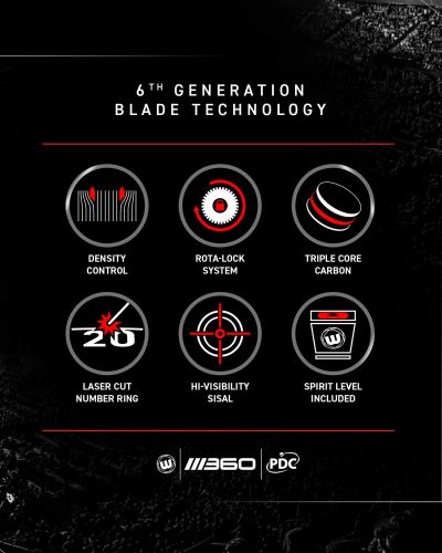 The Blade 360 is more than a professional dartboard, it’s a revolution in visual symmetry, longevity, and elite performance. Delivering industry leading Blade 6 Triple Core technology, the 360 combines the elite playability trusted by the PDC, with a striking new 360degree symmetrical design.
